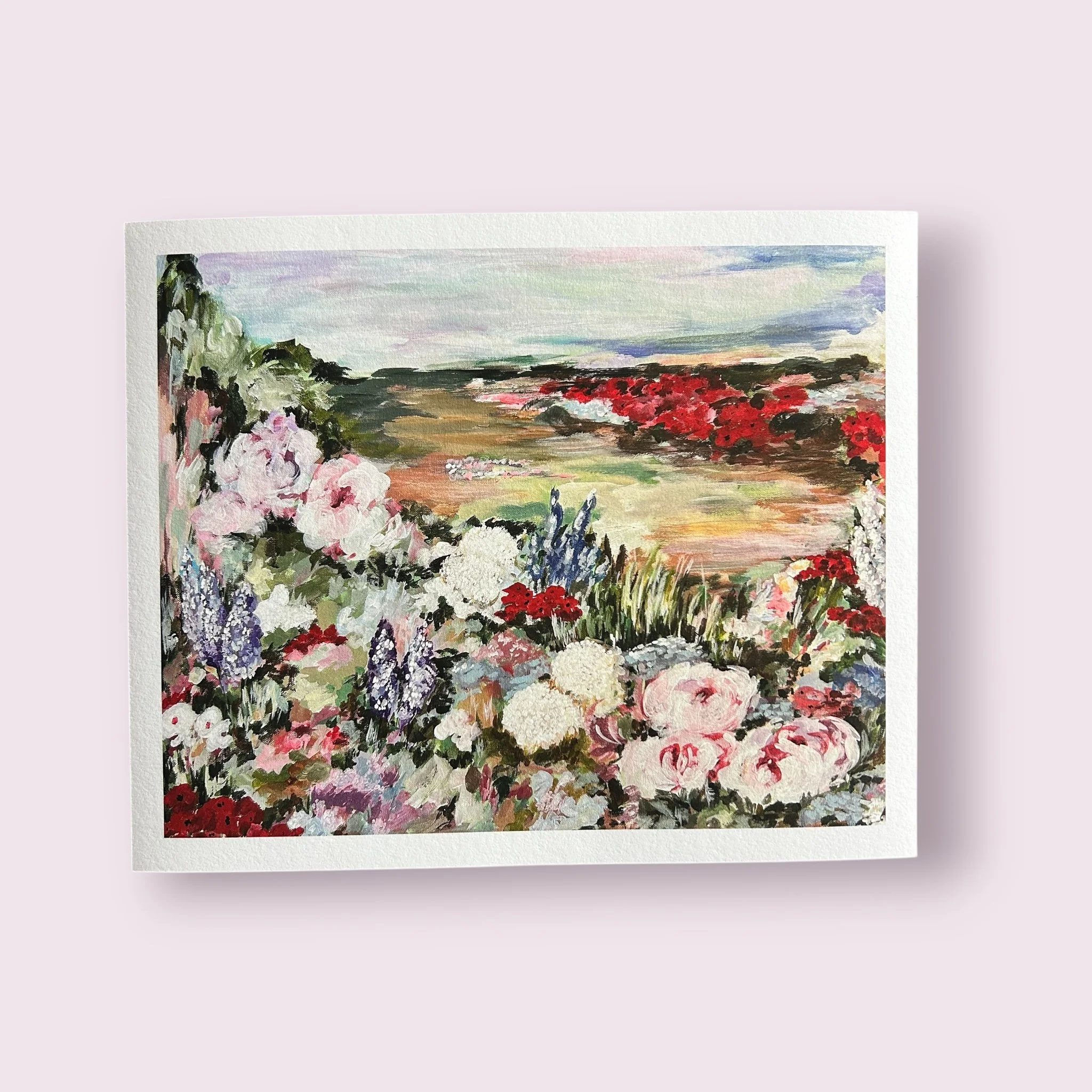 A colorful print of an original painting I created, Summer Blooms. 1/2 inch white border.